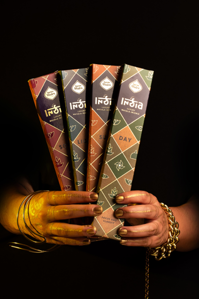 Maderas de la India, hierbas, aceites esenciales y aromáticos concentrados, aglutinante natural, varilla de bambú.
